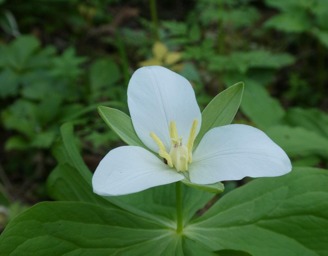 Webオオバナノエンレイソウ 原野の林内の湿り気のある場所にはえる高さ~40cmの多年草。 太く短い根茎をもちます。 茎は1本直立し、茎先に葉が3枚輪生します。 葉は長さ6~17cmほ
